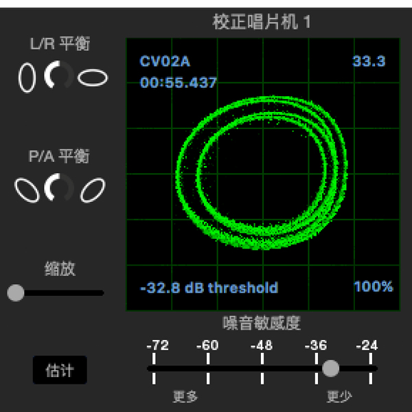讓電腦將自動分析當前最佳的設定值,或者手動調整,左右移動~~直到訊號顯示”右上方:唱盤一分鐘轉幾圈“的數字停止跳動時,就行了!